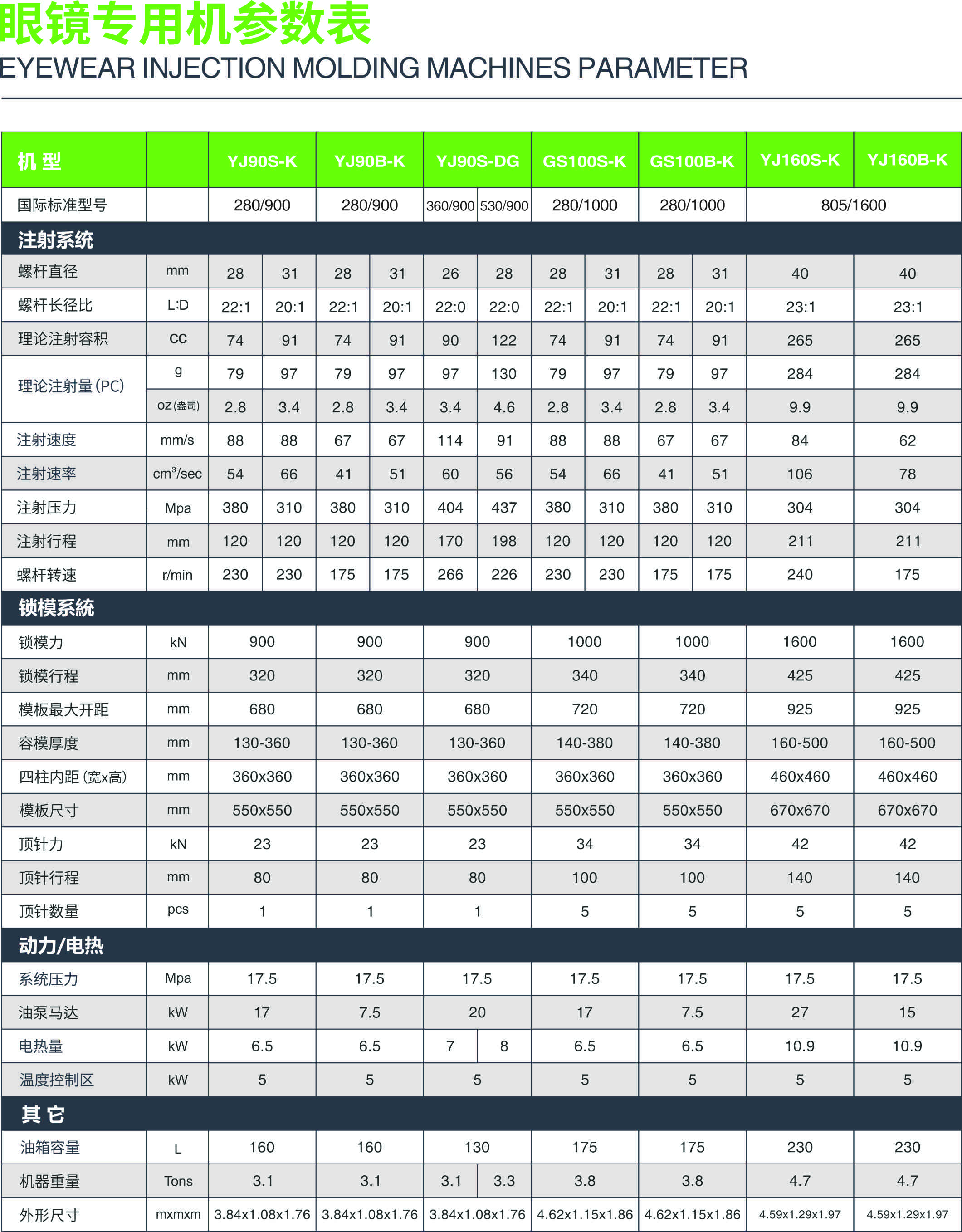 随着人们对教育的重视、对生活品质的追求,人口增长和人口老龄化等社会背景的变化,眼镜行业迎来了高速的发展。同时,人们对眼镜的品质要求也越来越高,轻巧、舒适、精细、耐磨便是大众所共同喜爱的产品。该行业产品原料价格高,性能特殊,主要原料有TR、PC、塑钢,成型工艺注重要点是:溶胶混炼充分、溶胶温度控制精确、注射压力高、注射速度快、制品尺寸重复精度高等条件,需要我们作为机械设备制造商予以高性能并具针对性的机器配置设计,优铸机械秉承“令客户满意,为社会创造更多的价值!”为企业宗旨,经过充分的市场调研与检验,推出了眼镜行业专用机,解决了常见的“行业痛点”,在国内以及海外得到众多用户的一致好评!
