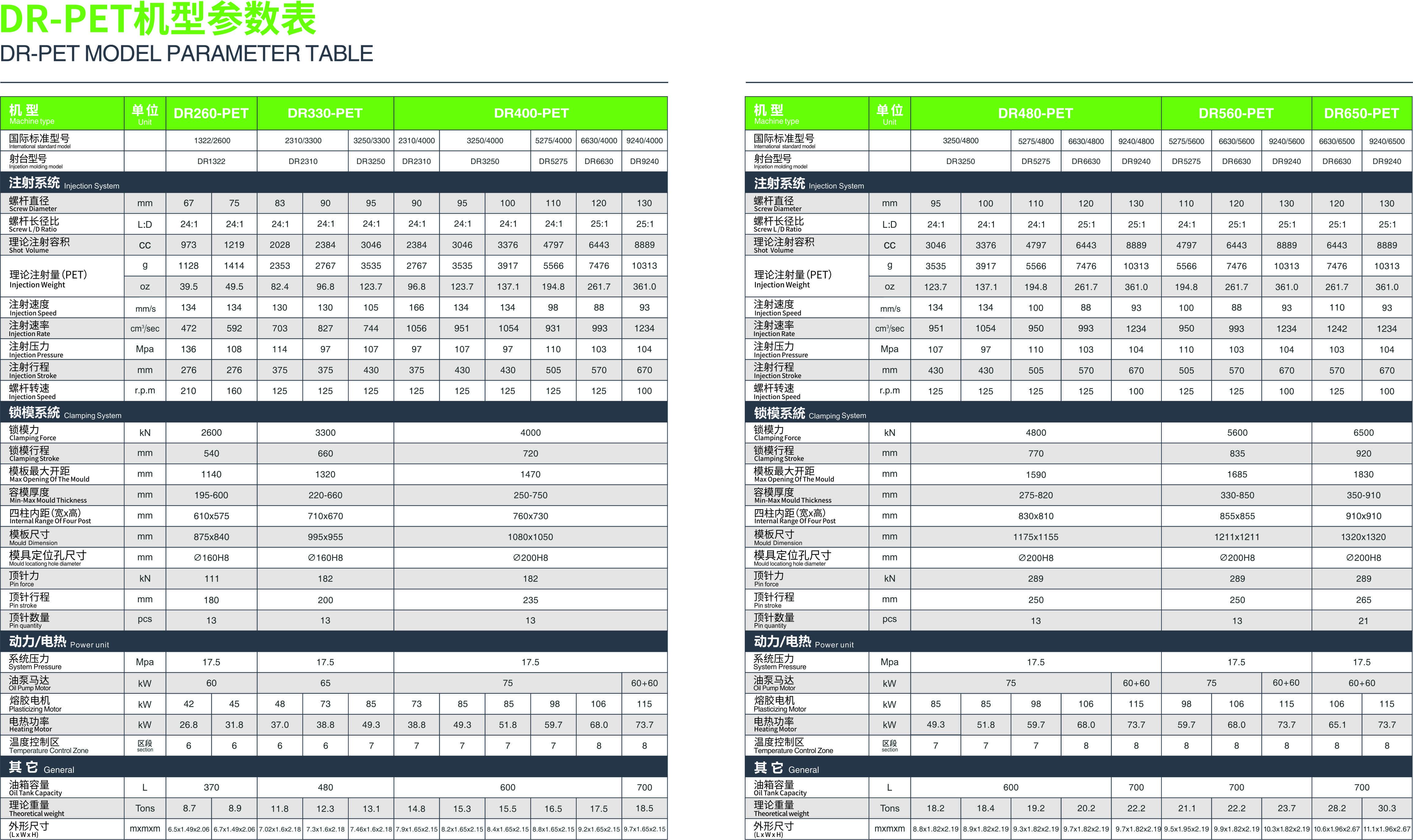 5、动力配置加大,提高电机过载能力和油泵排量输出,达到真正意义上的高速PET专用机。